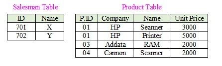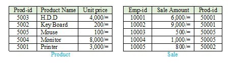 একটি কোম্পানির ডেটাবেজে নিম্নরূপ দুটি টেবিল রয়েছে: [ব-১৯]