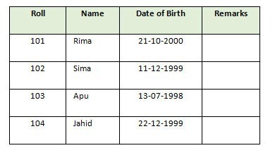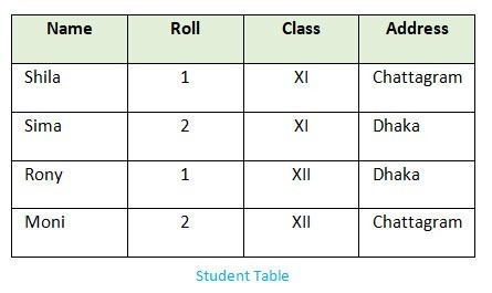 একটি কলেজে শিক্ষার্থীদের তথ্য সংরক্ষণের জন্য নিচের Table-1 ব্যবহার করা হয়েছে।